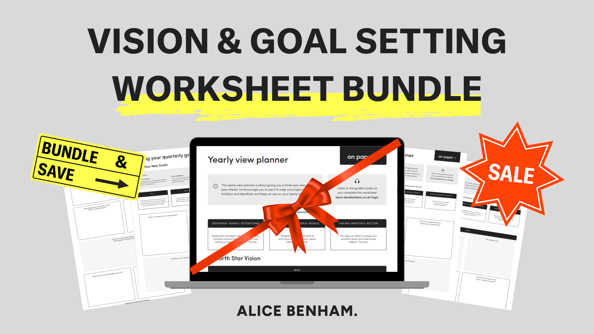 Ready to cast vision, and set goals that will get you there? These 2 worksheets will guide you through my tried and tested exercises, for working ON your business with ease.